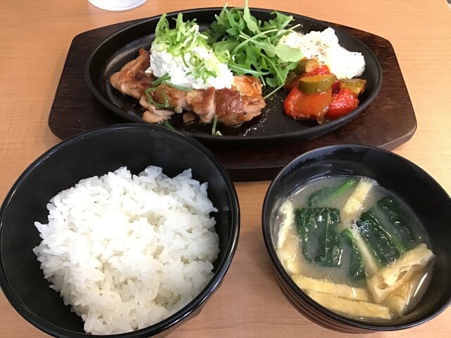 洋風と思いきや、タイトルにあるとおり”定食”って事で、ご飯と味噌汁付きです。