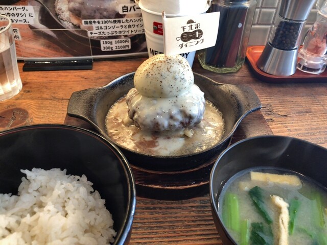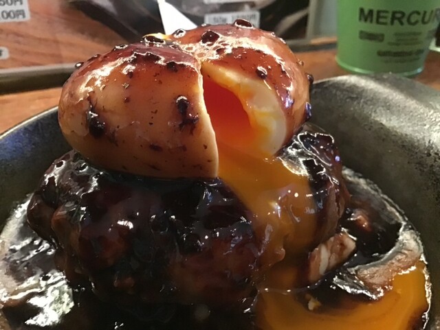 原点回帰、ゆで卵が載ったハンバーグ。