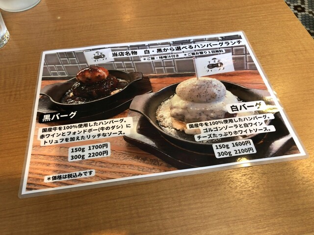 久しぶりにランチ「白バーグ・150g(1,550円)」。