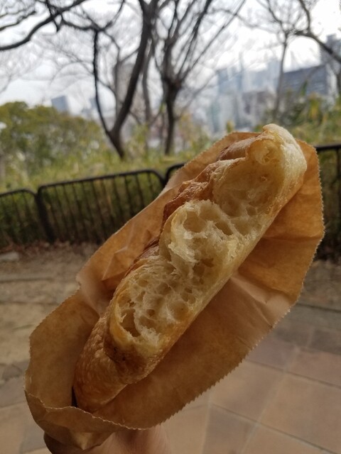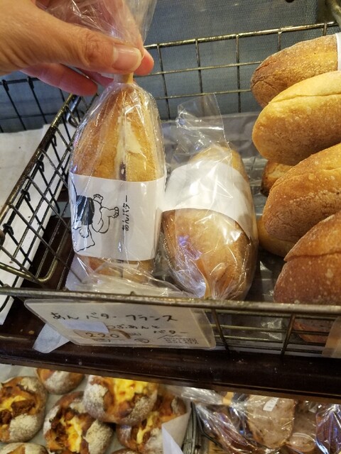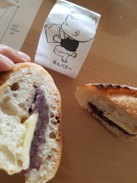 買ったパンは定番のアンバターのパンです。フランスパンにアンバターが入っていて名物のようです。