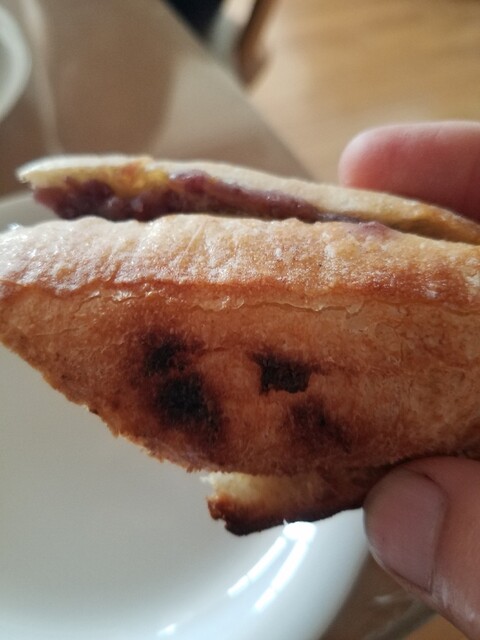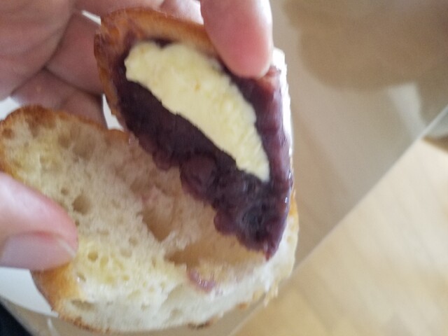 これと同じパンでミルクフランスもあります。中が白いクリームかと思ったのですがピーナツ色のクリームでこちらもおいしいです。かたいフランスパンに中身がほどよく湿らせてくれている感じでおいしいです。焼いてみましたが、そのままでも焼いてもおいしいです。