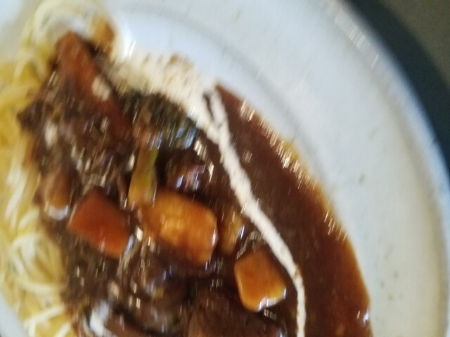 まずスパゲッティのシチューはとろとろの肉がごろごろとはいっておいしい。スパゲッティともよくあいます。ハンバーグセットのご飯にもかけて食べたらこれまたおいしいです。