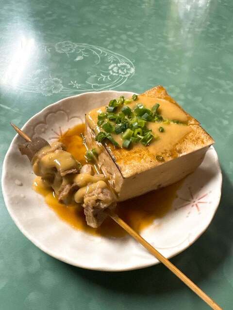 「ひやかけ(かつお出汁)」・・・いつも食べてるイリコ出汁よりかは、やや濃いめの色合い。