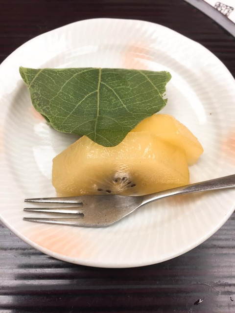 最後にデザート、キウイと柏餅が出て来て今宵の宴は終了・・・
