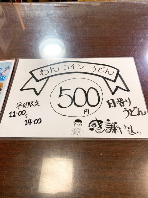 さて・・・注文は・・・店頭で確認した通り、本日のワンコインうどんにしましょ(^^♪