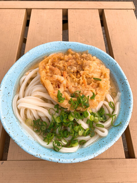 嫁が食べてたのは、「かけ(ひやあつ)」に「小エビかき揚げ」