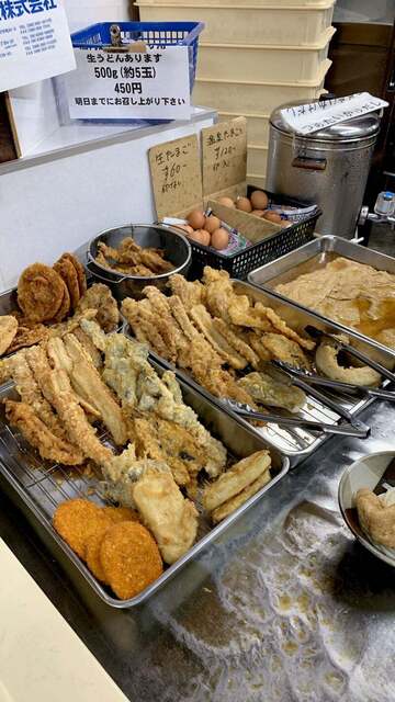 この店は玉数と、温いのか冷たいのかを注文口で告げて、その横に並ぶ総菜などを選んで代金を支払う完全セルフの店でした。