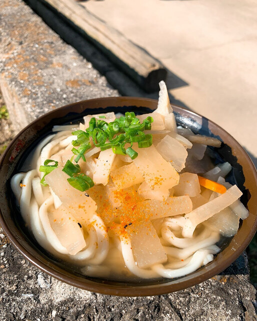 それは・・・ダシに具が入っている事です。具はダシと同じ色に染まったダイコンをメインに、ニンジンやオアゲなど・・・いわゆる香川の郷土料理でもある「しっぽく」というものです。