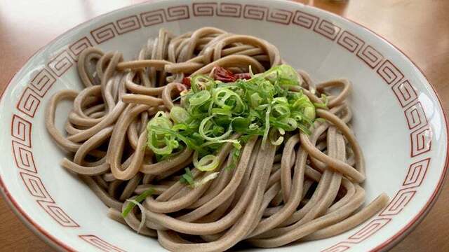 麺温め、盛付け、出汁、薬味(ネギ)=店側