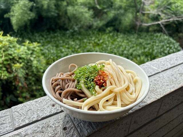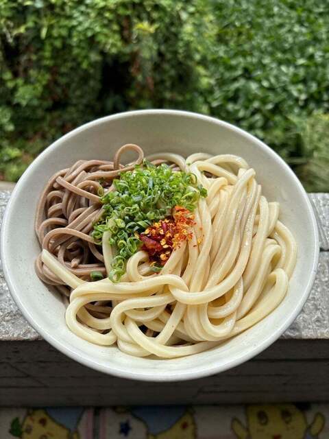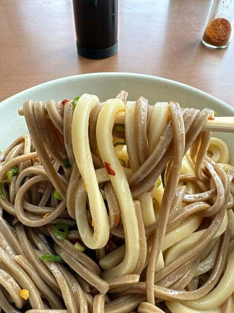 2つ合わせれば異なるコシ弾力と風味融合〜♪(´θ`)ノ