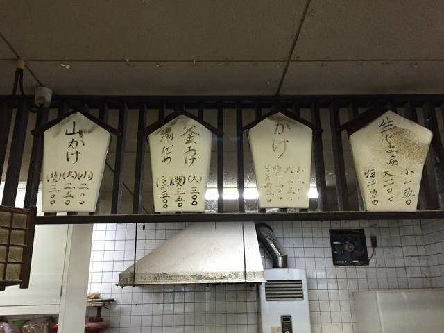 また、この店は「かけ小」が100円、「かけ大」で150円、「かけ特大(3玉)」が200円、「かけジャンボ(?玉)」が450円という事でした。