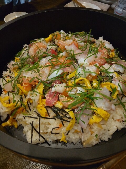 シメのちらし寿司にまでふぐの切り身が乗っててビックリ!