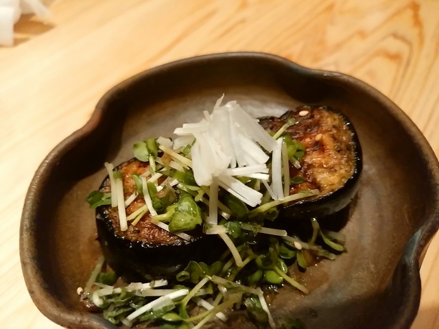 銘柄モノではなく普通の茄子らしいですが意外に美味しい。特段珍しい味つけではないので、茄子のかたち、火入れか良いからでしょう。
