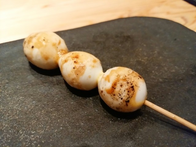 ウズラの卵。半熟トロッ、いい火入れ具合。完璧な仕上がり。