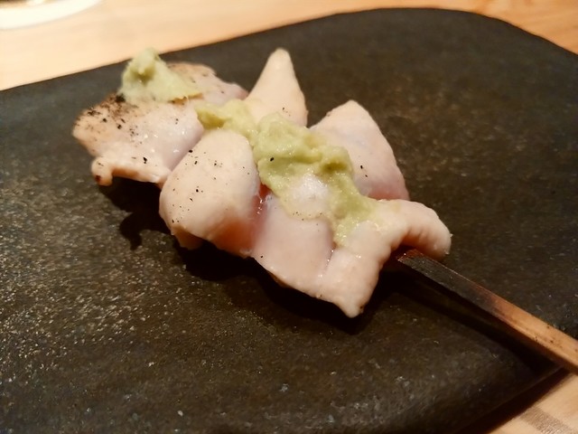 レアのササミに山葵。レアレアさびやき、塩加減、さびの量ともに良し!