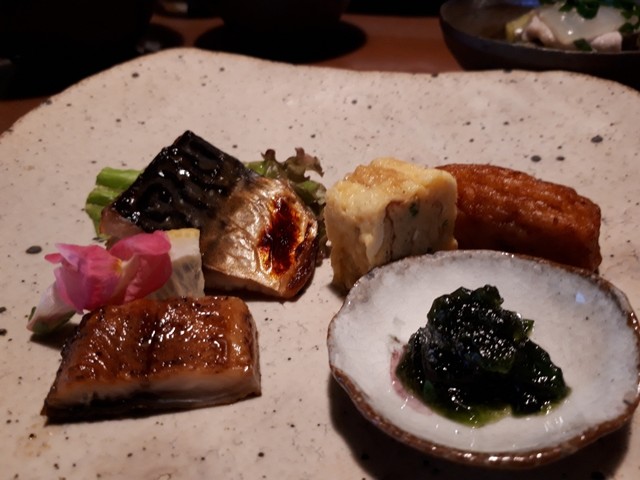軽く炙った鹿児島の地鶏(モモ肉、ムネ肉)を柚子とまぶして。大根と一緒に食べさせる何てなかなかのアイデア。しかも美味しい✨✨味つけも素晴らしいな。