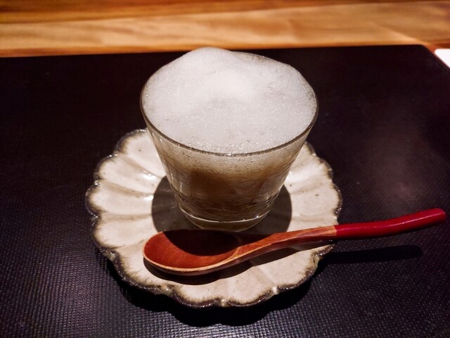 井伊さんにしては珍しい仕上げだな。熱々のゴマ豆腐に金ゴマをまぶし香ばしく。ゴマのコクに、無花果の甘みを加えるのがニクい技。