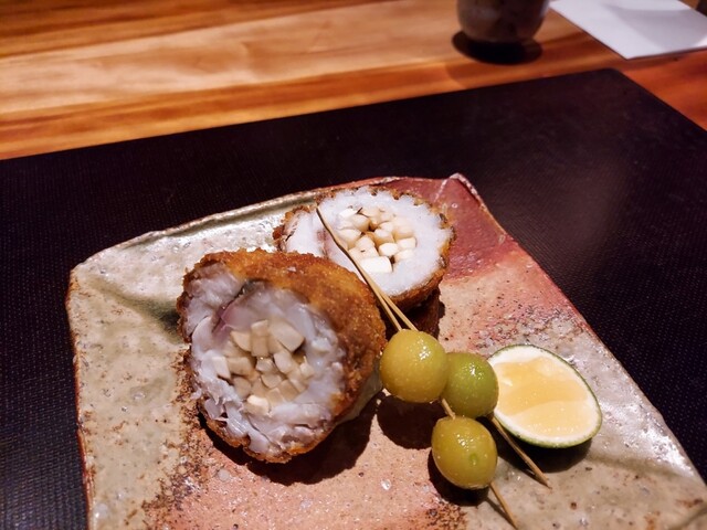さっぱりと。こちらは王道な日本料理ですね。キスの軽やかなうま味に海老のいい香り。包み揚げることで、一層うま味が引き立つ。