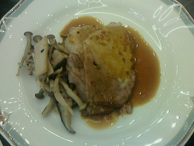 ・ローストポークのマスタード風味のキノコ添え(カーヴィングサービスで取り分けてくれるのでちょっとホテルっぽい♪でもローストビーフじゃないトコが地方ホテルの2000円ビュッフェらしいかな…)