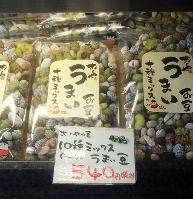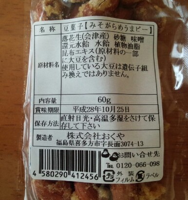 喜多方のお気に入りの豆屋・おくやさんに今回もお邪魔しました。今回で3度目です。いつものように自宅用に豆を購入しましたが、いつものに加えて今回はカマンベールチーズ風味の豆をお試ししてみます。ついでに運転のお供も購入♪ピーナッツクリームの大判焼きを見つけて、これもつい購入しました。訪問したこの日はちょうど節分で、お店のおばさんは赤鬼、奥で仕事をしているお兄さんは青鬼になっていました。