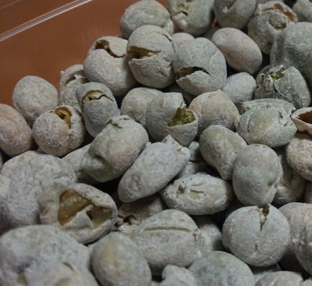 夜のお慰みにいただきました。まずは「塩ゆでピー」♪やわらかく、ほんのり塩味がきいています。次に「カマンベールちー豆」♪お店のPOPにも袋書きにも濃厚をうたっていますように、確かに濃厚です。でも、濃厚過ぎて食べ進むとあまりの濃厚さに気持ち悪くなりそうかな?店頭での試食は大抵ひとくちですから、ひとくちだけのインパクトは凄いですが、みっつ、よっつと、食べ続けた時の想像力をフル回転させないと失敗する場合もあるということですね。勉強になります。御馳走様でした。