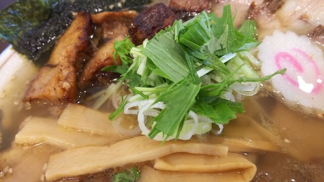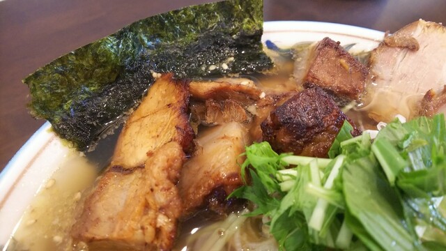 名店の塩には透き通った琥珀色スープが多いですが、こちらの塩は不思議と見た目に透き通った感じの塩ではありません。しかし味わいはしっかりまろやかな塩をやっています。まったくとんがっておらず、えぐみもありません。障りのない優しい味で、むしろ圧倒的なチャーシューのボリュームからくるチャーシューの煮汁で、その濁りと味わいが結果的に塩よりも醤油に寄せている観がなくもない面白い塩です。