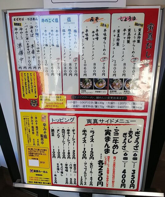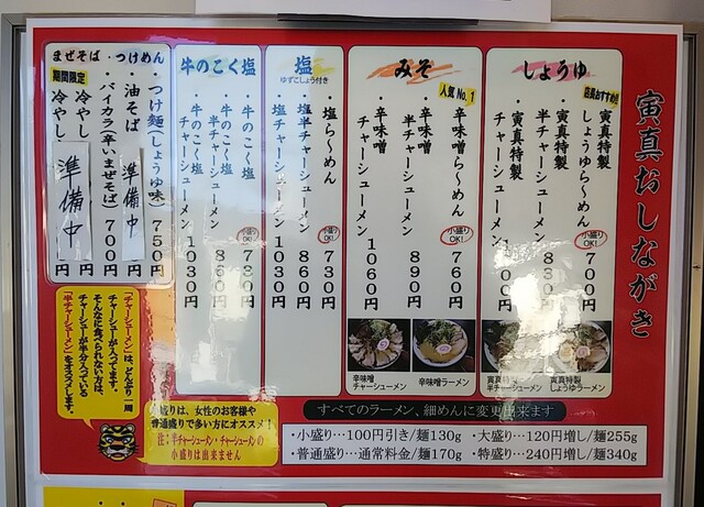 /寅真特製醤油・辛味噌・塩・牛のこく塩・つけ麺醤油・寅真特製チャーシューメン・塩チャーシューメン