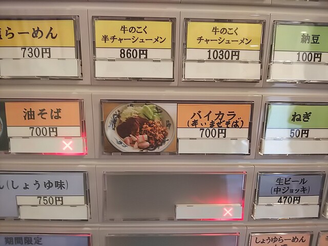 入店してみると、当たり前ですが店舗は新しくなり、前よりもかなりゆったりした広さになっています。席数も多分増えたように感じます。トレードマークの黄色い寅猫の招き猫もカウンター席の前の棚に飾ってありました。注文には、新メニューの油そばにしようか、それともまぜそばにしようか迷いましたが、まぜそばはかなり辛そうだし、油そばはこの時はまだ準備中でしたので、次回に期待しようと思います。