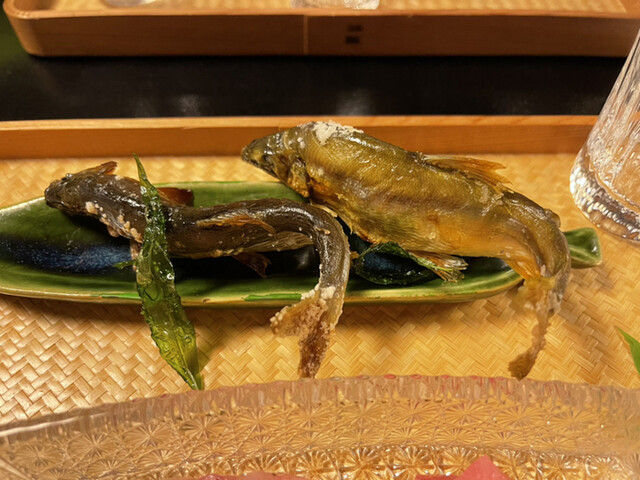解禁になっていない鮎を始め、春と夏の間の季節の変わり目の食事を堪能しました。鮎は稚鮎と成魚の間の大きさで、このサイズを初めて食べました。鮎らしさがある中、頭から骨まで食べられて、このサイズに意味がわかりました。