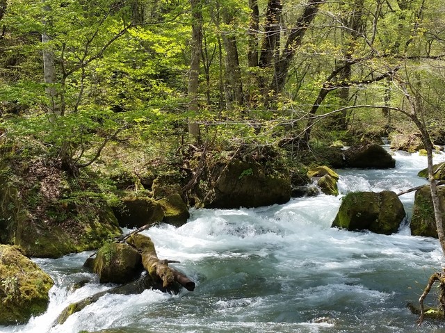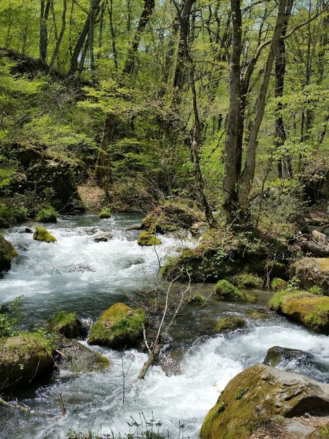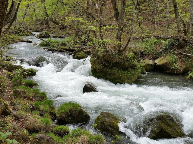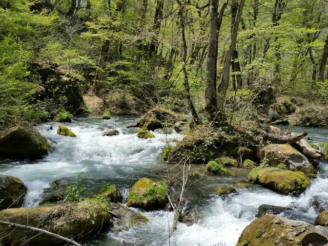 奥入瀬渓流は、今 正に新緑が芽吹き始めたところ。