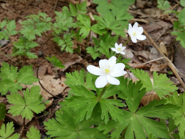 ブナの原生林の中に、シラネアオイ、ニリンソウ、クロモジなどを見つけながら。