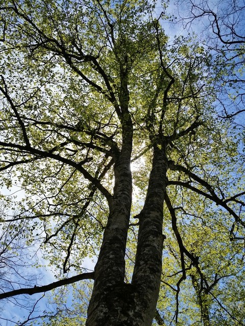 若い枝の間にミソサザイやオオルリの囀りを聞き、