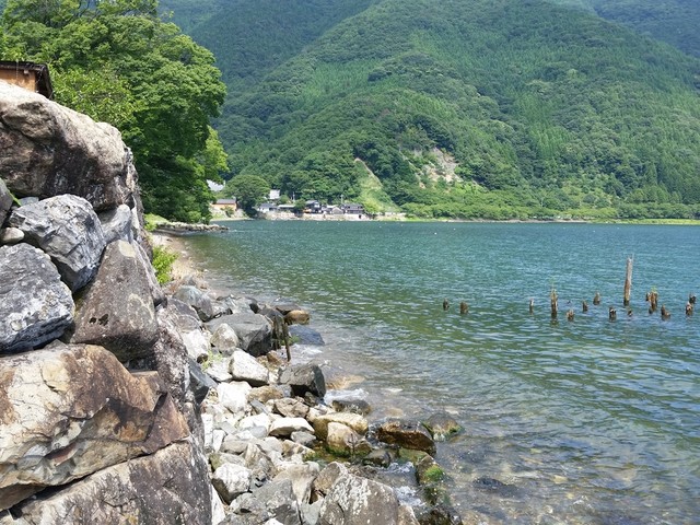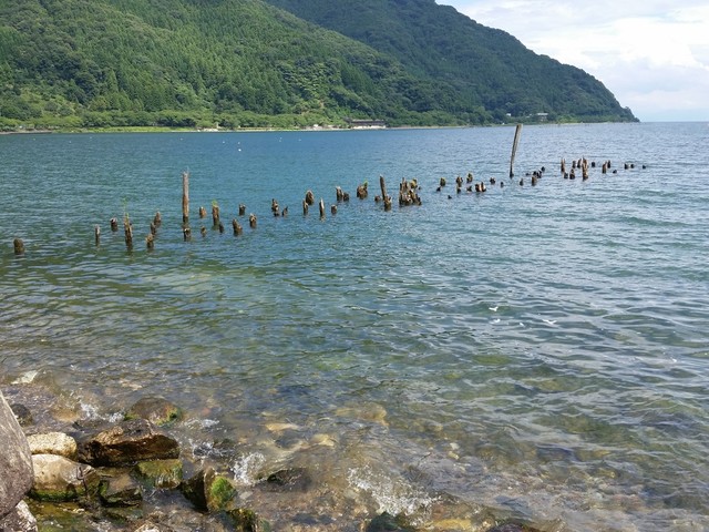 今は湖面に突き出た桟橋の木杭と湖岸の石積みだけが、