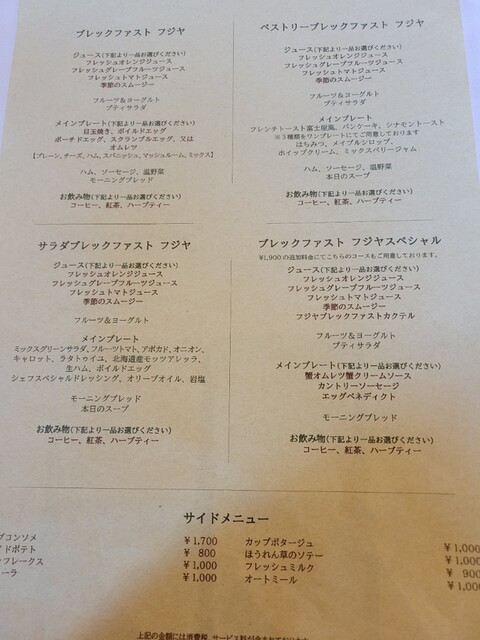 フレンチトースト富士屋風、シナモントースト、パンケーキ。