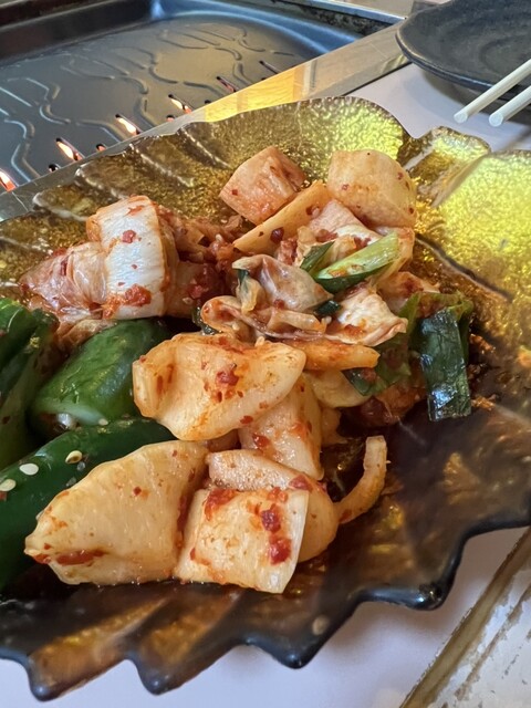 佐賀牛のA4 A5にこだわられておるようで、ユッケもレバーも非常に濃厚。キムチ盛り合わせも調和の取れた優しいお味。