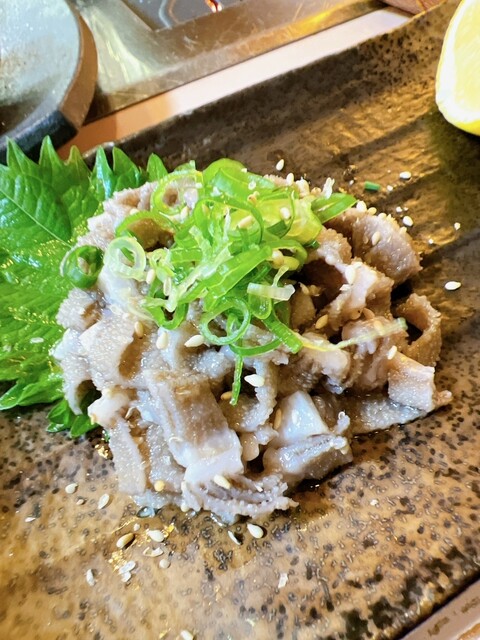 続いて特上タン塩、これもやはり厚みも旨味も最高です。自家製のタレと合わせて供されるのはお出汁ベースの優しいタレも一緒に。これもまた美味。