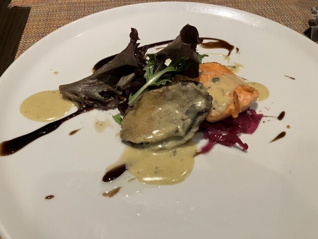 肉厚なアワビの食感がよく、サーモンは柔らかくてソースとの相性抜群。