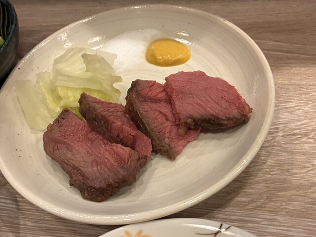 白いのがコールタンで,タンを冷やしており,塩でいただきます。ひんやりとした食感が心地よく,高級ハムのような味わい♪