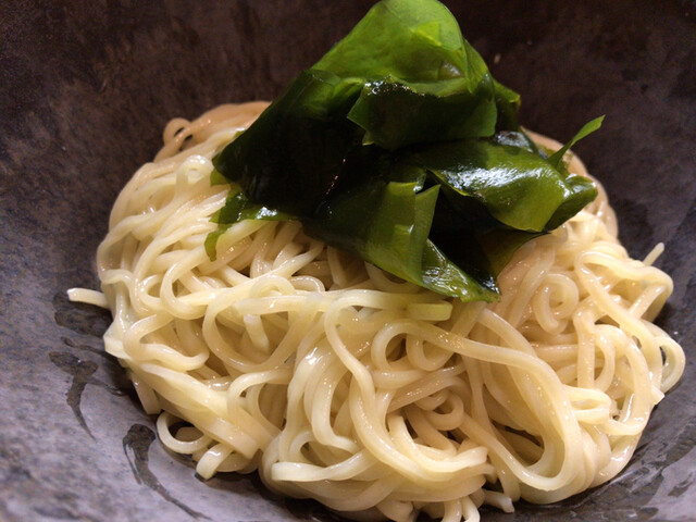 提供された一杯は、細切りチャーシューやワカメがたっぷりで、いかにも涼しげビジュアルやね♪