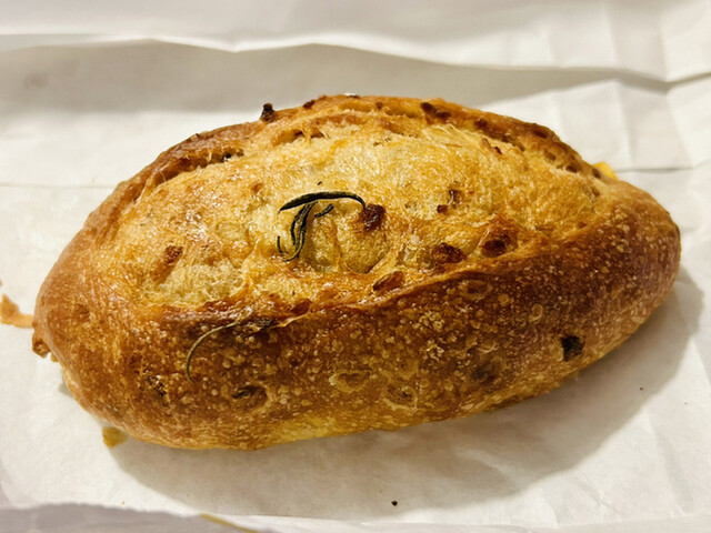 柔らかいフォカッチャ生地に、フライドオニオンと甘いスイートコーン。