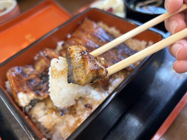 ふっくらしたうなぎがごはんの上にツヤツヤ。