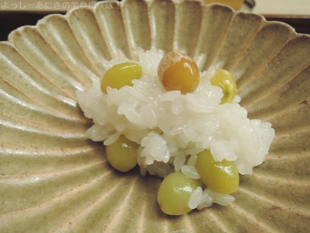 銀杏のお寿司です。先付でご飯ものと少し驚きましたが