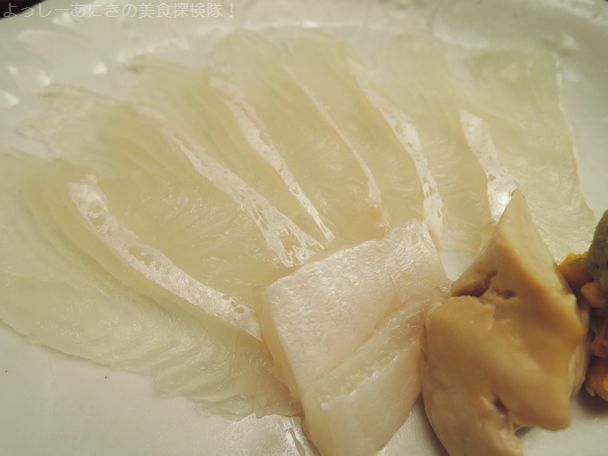 お刺身は明石アマテガレイの造り・縁側・肝です。