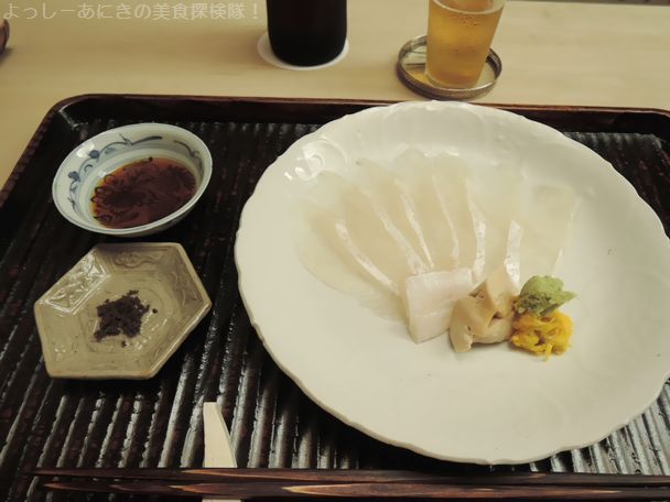 醤油と藻塩も提供されて さっぱりとして弾力があり塩でいただくとまた格別に美味しいです。