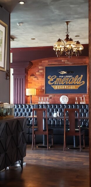 アメリカンなお洒落な店内、海が見える高台の立地で窓からもよい景色を見ながら