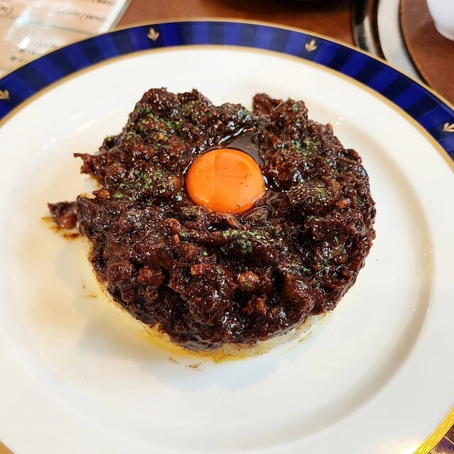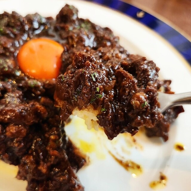 粗びき肉のゴロゴロ感が凄くてルーの濃くもパンチあります。のこりはパンできれいに食べきります。