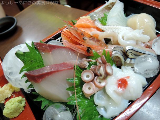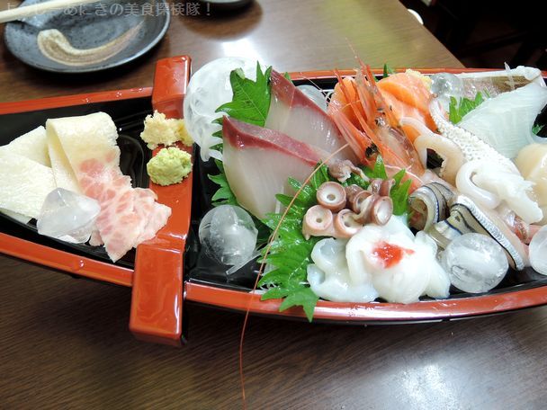たくさんの種類が盛られた船盛で(小ぶりですw)