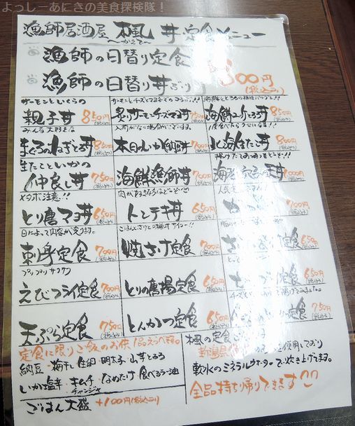 メニューは魚料理とだし巻き8種類、豆腐や湯葉のお料理の