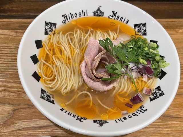 47都道府県産煮干を使用、動物系不使用の片口鰯煮干が軸となった、プレミアムな記念煮干蕎麦。