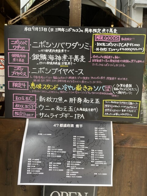 47都道府県の煮干を使用した周年記念にふさわしいプレミアムな淡麗煮干蕎麦。